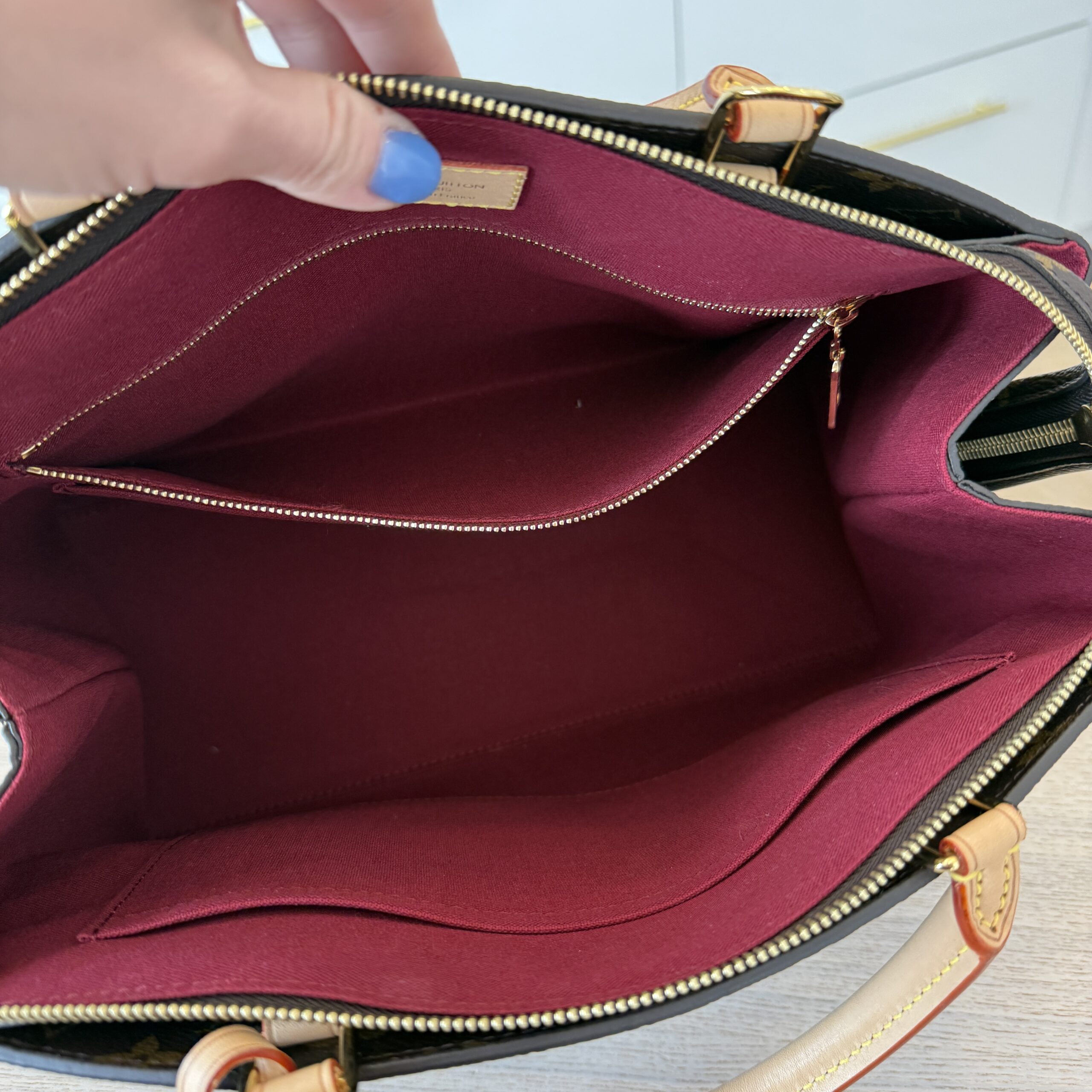 Clean inside and out, light patina, either new, or used a few times, zipper runs smooth